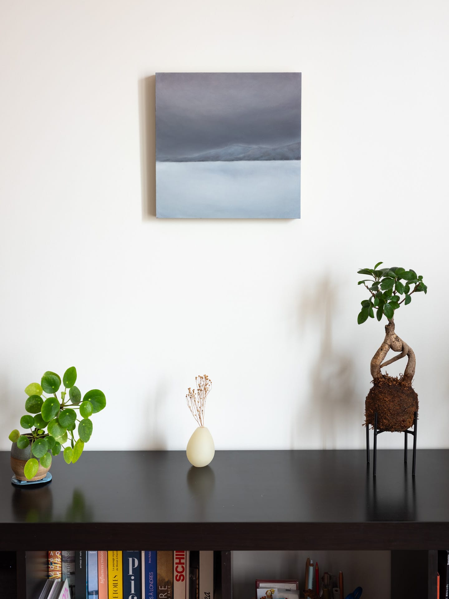 This is a work in my Landscapes, dimensions series. It’s an oil painting on wood panel. I used the frozen lake of Överst-Juktan in Sweden as a model. I went there in February 2023. But I worked on it in Paris.