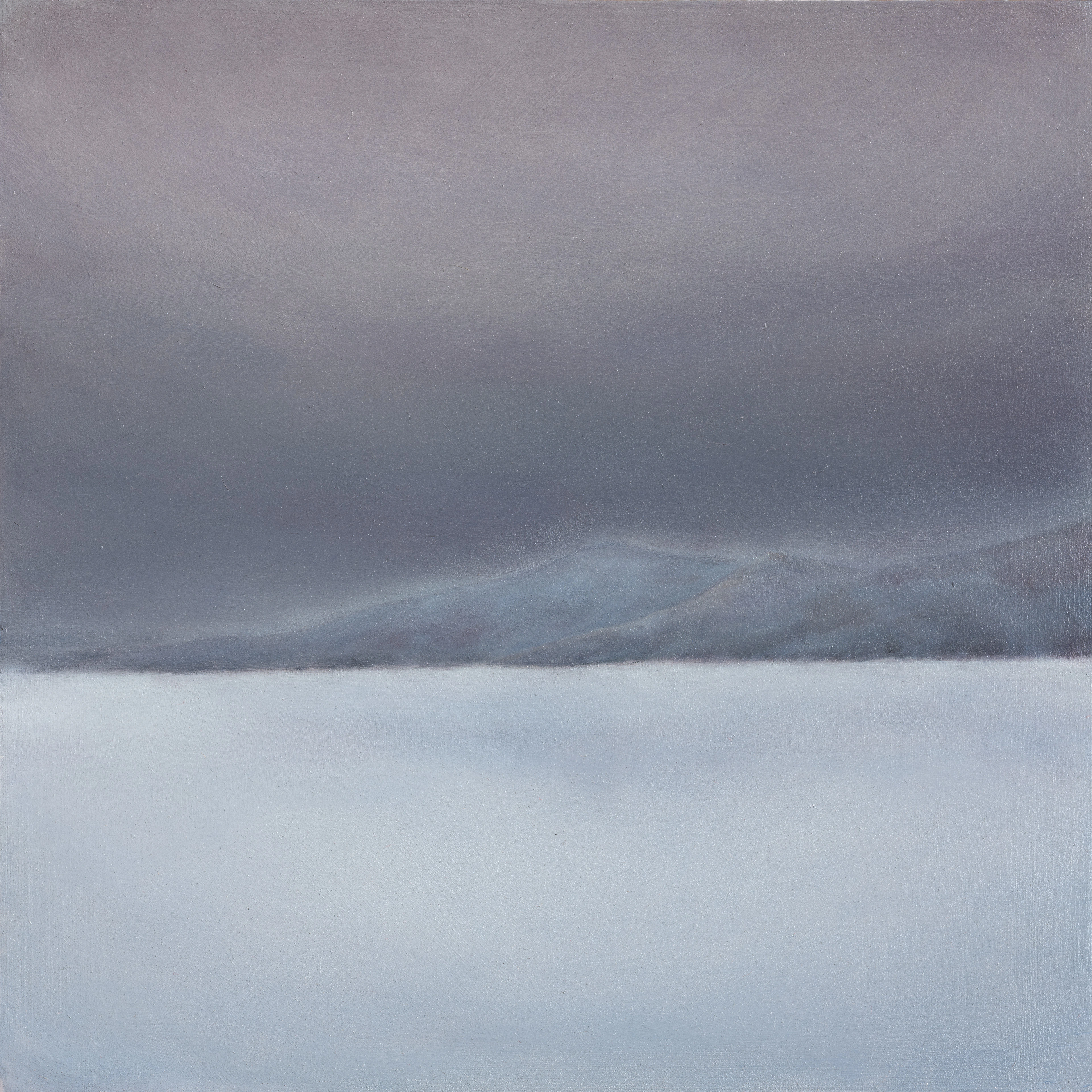Voici une œuvre de ma série Paysages, dimensions. C’est une peinture à l’huile sur panneau de bois. Le lac gelé d’Överst-Juktan, en Suède, m’a servi d’inspirati…