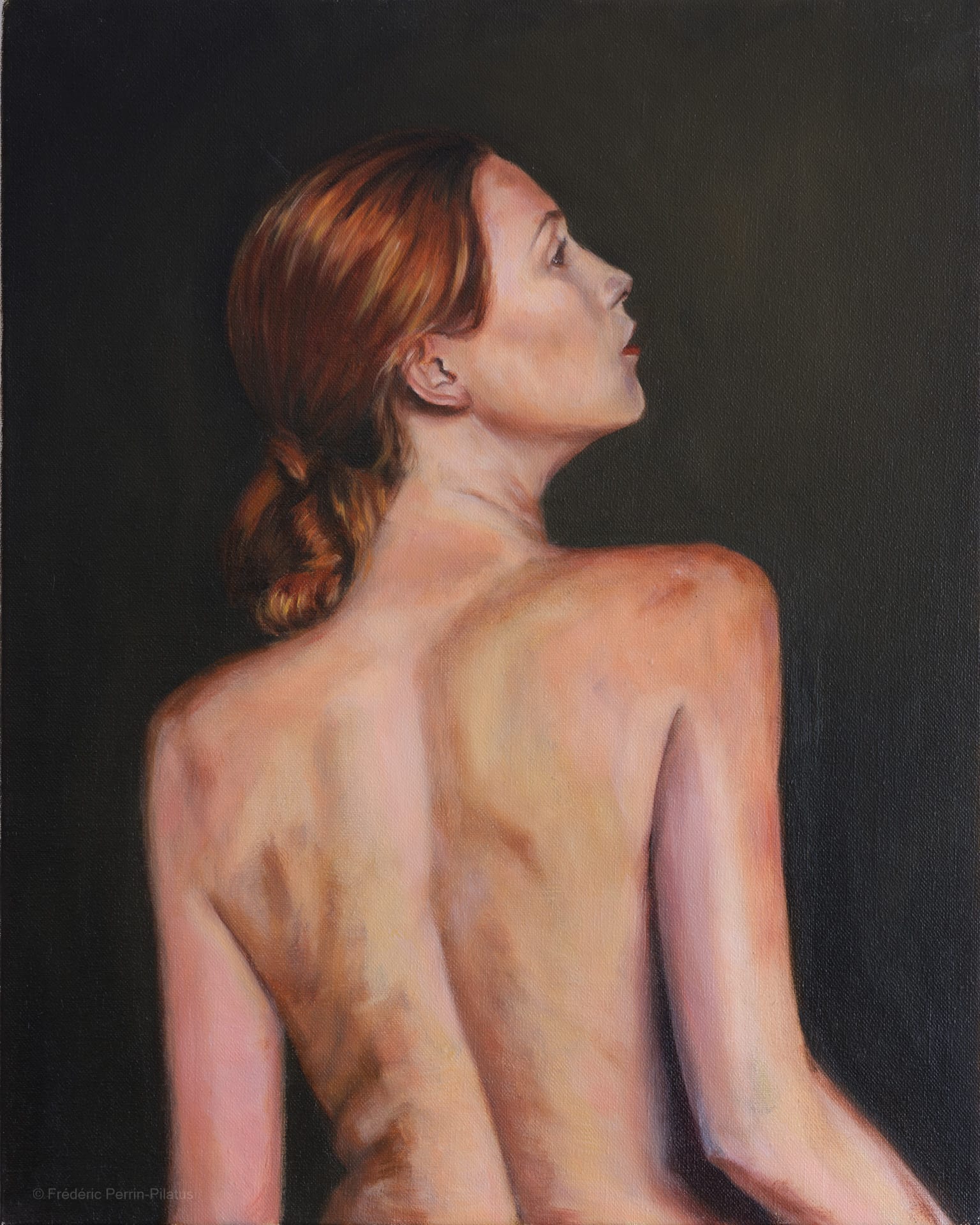 En parallèle de mes recherches autour de l’arbre et du paysage, je développe une série de toiles sur la figure humaine, le corps, les postures, les émotions qui s’en émanent. J’ai travaillé d’après photographie pour cette étude de nu, tout en cherchant la profondeur que l’on peut obtenir d’après modèle.