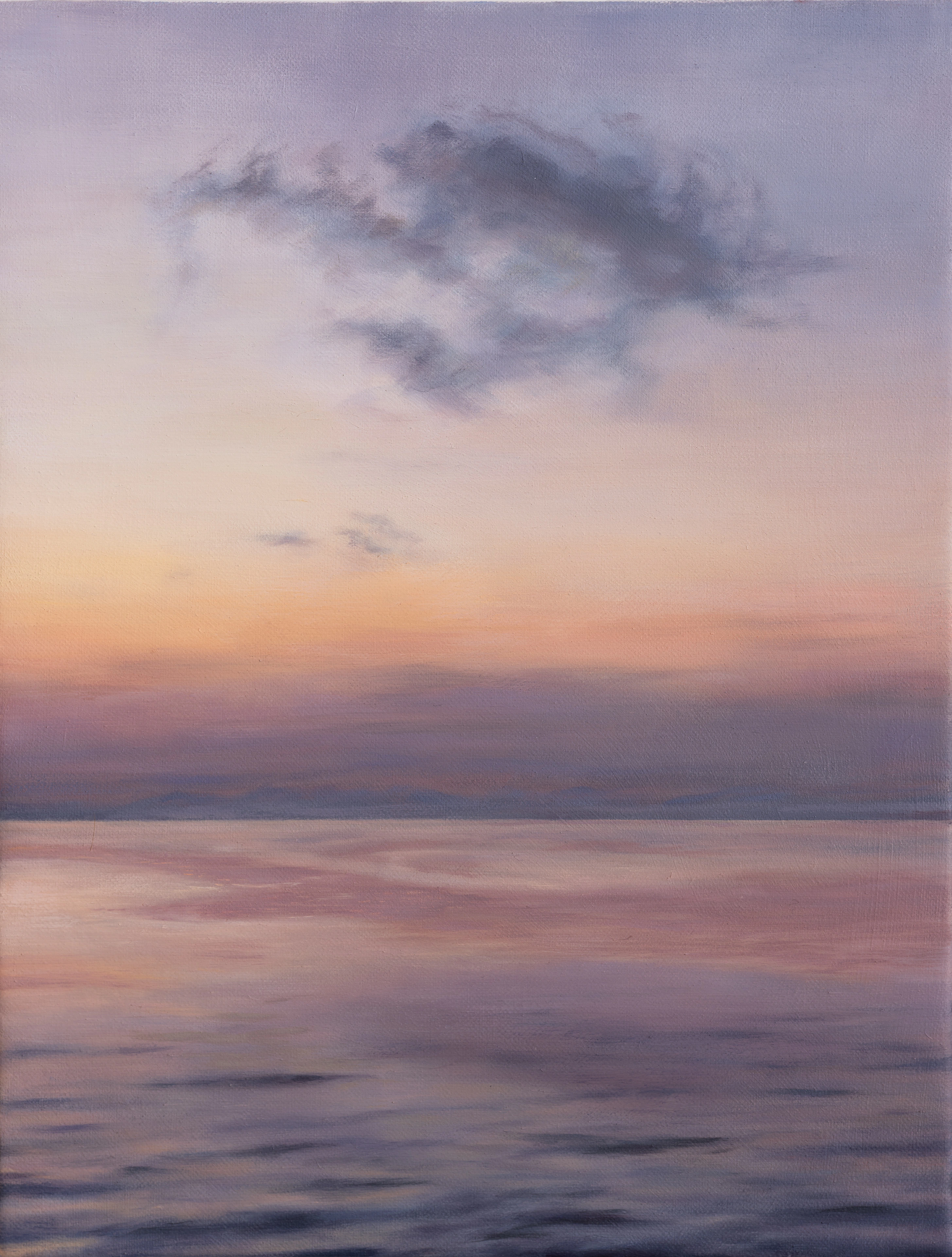 Voici une toile de ma série Paysages, dimensions. Une recherche autour du paysage et de la dimension particulière apportée par le travail approfondi de la couleur, en peinture à l’huile, sur des petits formats. C’est une série que je conçois comme un cheminement vers mes paysages introspectifs et spirituels.