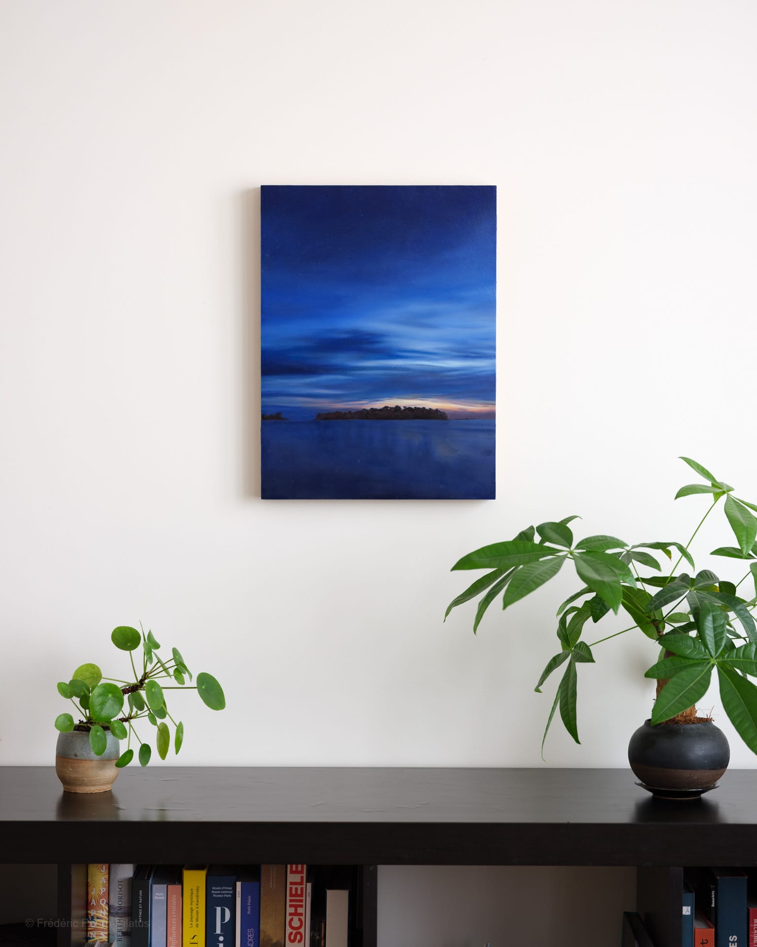 Cette œuvre est une peinture à l’huile sur support bois. Mes inspirations pour cette peinture est le Golfe du Morbihan, en Bretagne. Mais cette œuvre prend une…