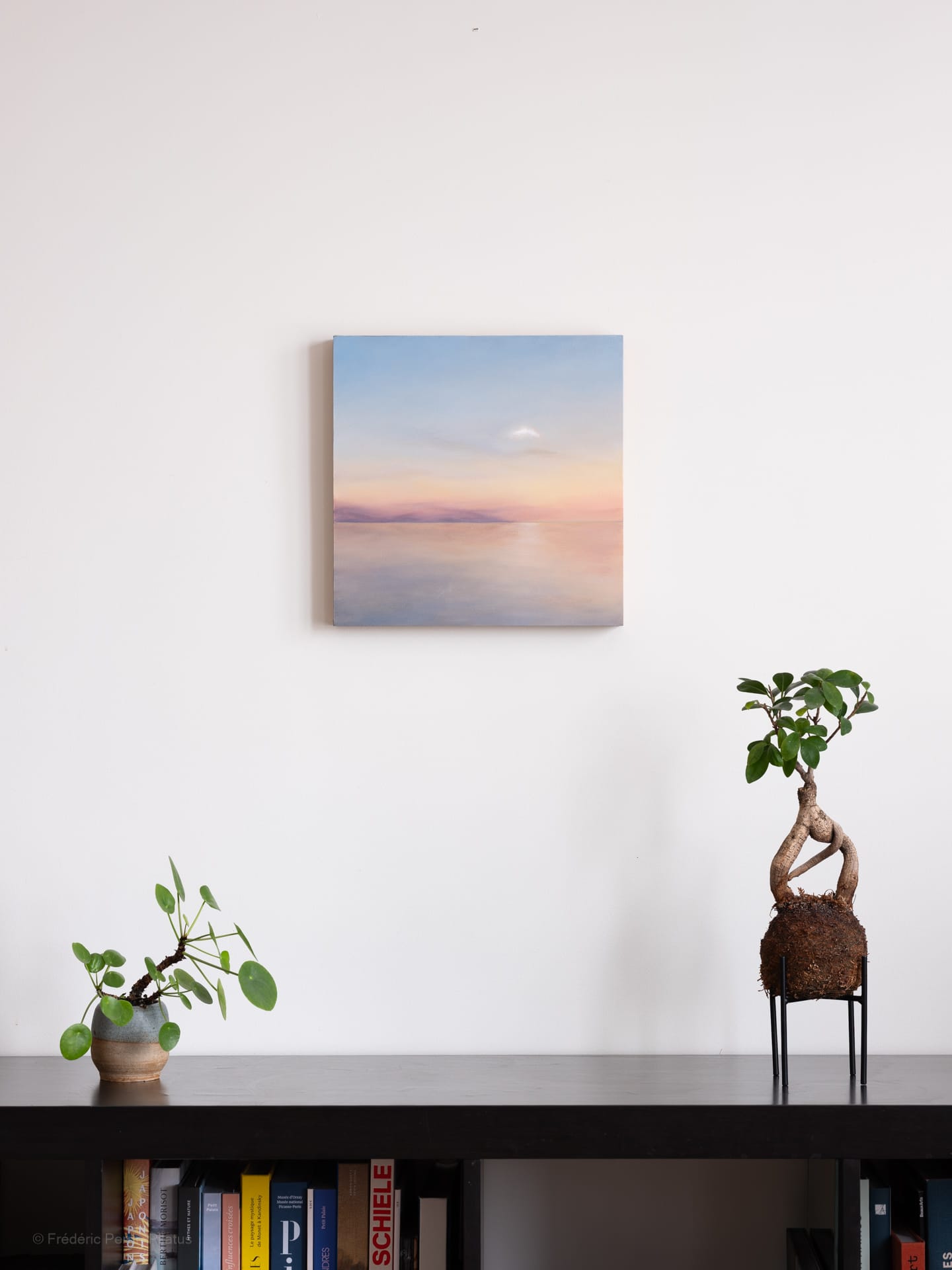 Voici une œuvre de ma série Paysages, dimensions, que j’ai finalisée en janvier de cette nouvelle année 2026. C’est une peinture à l’huile sur support bois que j’ai travaillée d’après imagination, un paysage minimaliste au travers duquel la profondeur de la couleur devient un territoire émotionnel. Une œuvre que j’ai réalisée d’un lieu qui n’existe pas – une traversée sans carte.