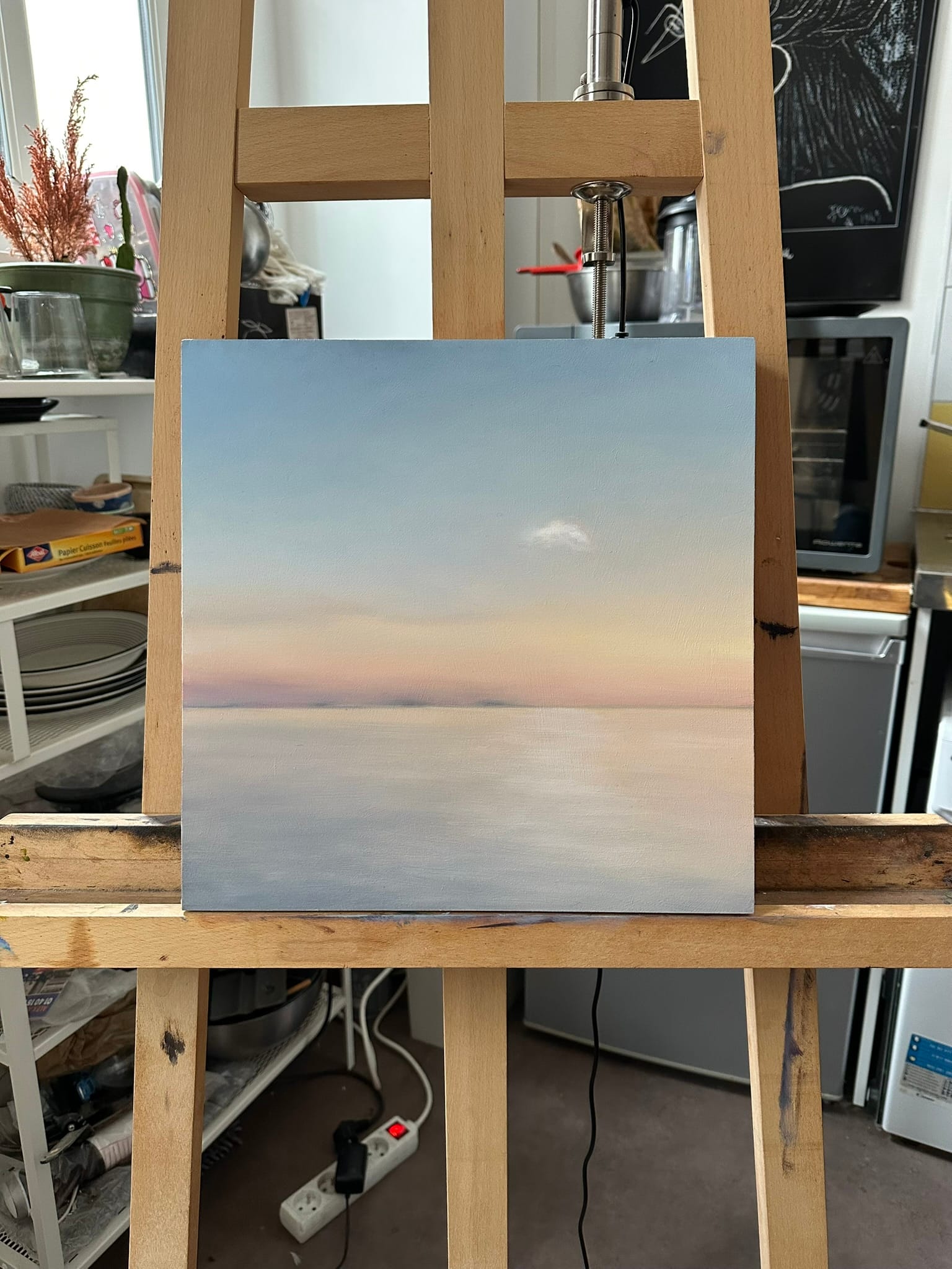 This work is part of my Landscapes, dimensions series. I’ve completed this painting in January at the beginning of this new year, 2026. It is an oil painting on wood panel, created from imagination – a minimalist landscape where the depth of color becomes an emotional territory. A piece born from a place that does not exist – a journey without a map.